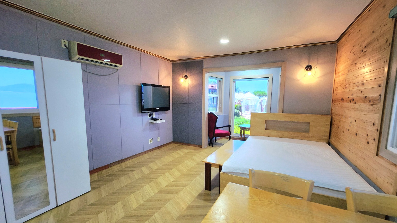 기준 2명/ 최대 4명면적 : 39.6m²객실타입 : 원룸형, 주방, 화장실객실시설 : 더블사이즈 침대1, 더블사이즈 침구류1, 에어컨1, 냉장고1, 실외화2