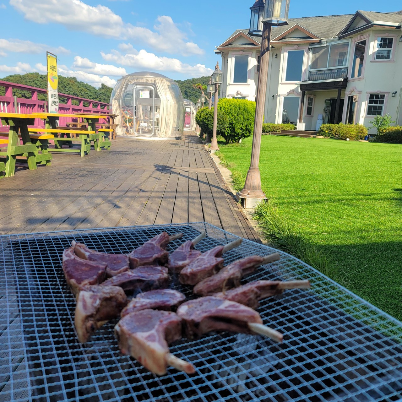 ※ 모든 돔에는 냉난방이 가능하며, 야외테이블과 세트로 구성되어 있습니다. 고기는 야외에서 굽고 식사는 자유롭게 이용을 하실 수 있습니다.