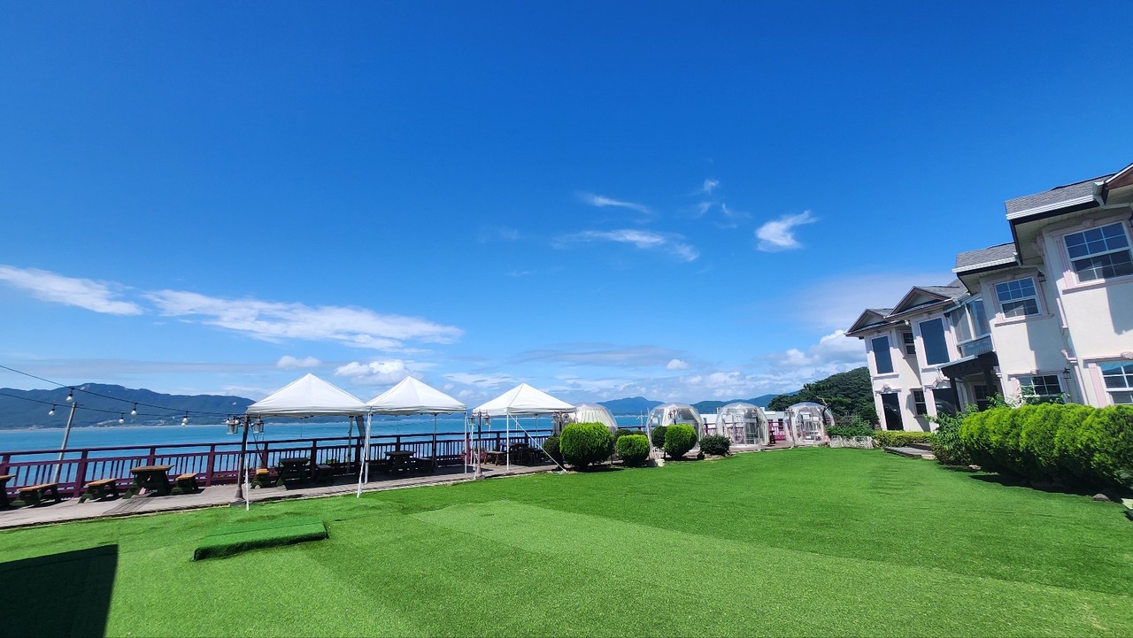 파도소리를 들으며, 잔디밭에 앉아 한가로이 여유를 느껴보세요.