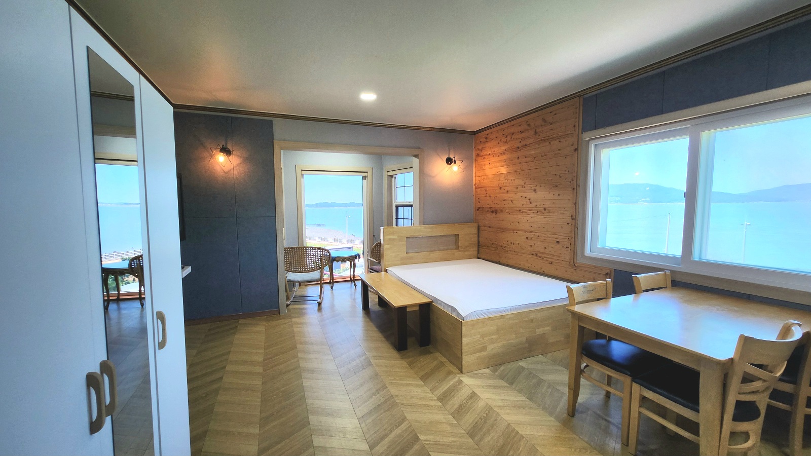 객실시설 : 더블사이즈 침대1, 더블사이즈 침구류1, 에어컨1, 냉장고1, 실외화2